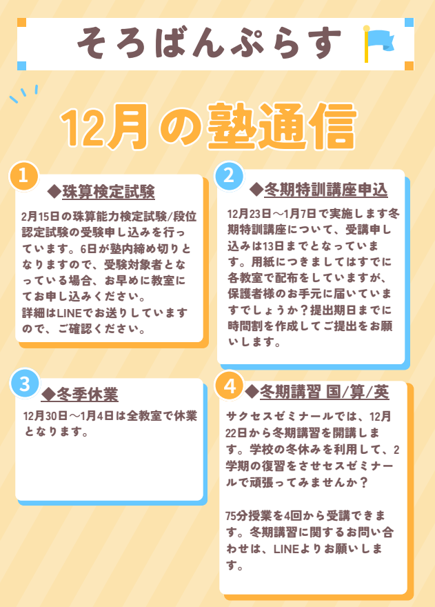 そろばんぷらす TOP » news » 12月塾通信